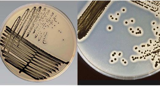 Eğer gelişim gözlenirse, koloniler şeffaf veya opak zonlar görülmeden kahverengi ila gri veya renksiz olabilir.