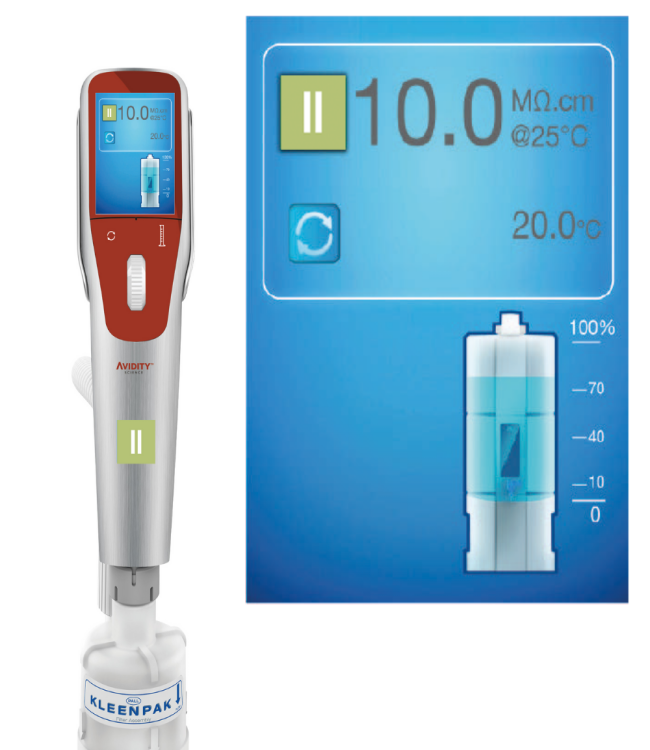 Duo™ II.I ayrıca entegre dağıtıcıdan veya isteğe bağlı uzak dağıtıcıdan dakikada 2 litreye kadar talep üzerine 18.2MΩ·cm’de Tip 1 Ultra Saf su üretir. Çıktı, sezgisel ve basit bir yazılım kontrolü ile sürekli veya hacimsel olarak dağıtılabilir. Tip 1 su aşağıdakiler için kullanılır: