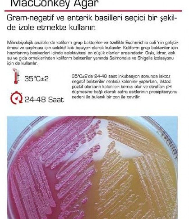 Gram-negatif ve enterik basilleri seçici bir şekilde izole etmekte kullanır.