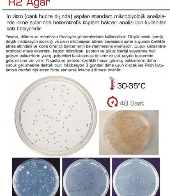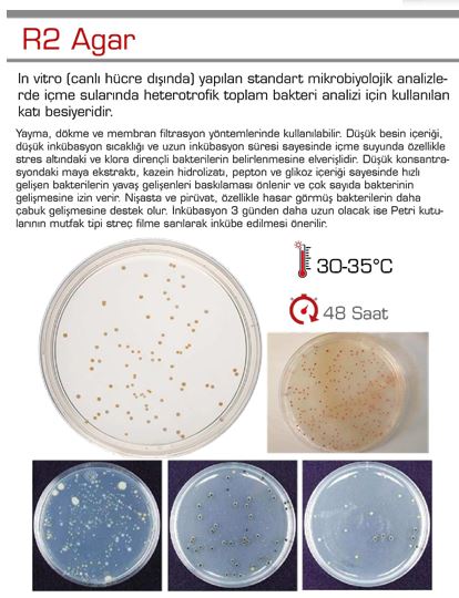 ln vitro [canlı hücre dışında] yapılan standart mikrobiyolojik analizlerde içme sularında heterotrofik toplam bakteri analizi için kullanılan katı besiyeridir.