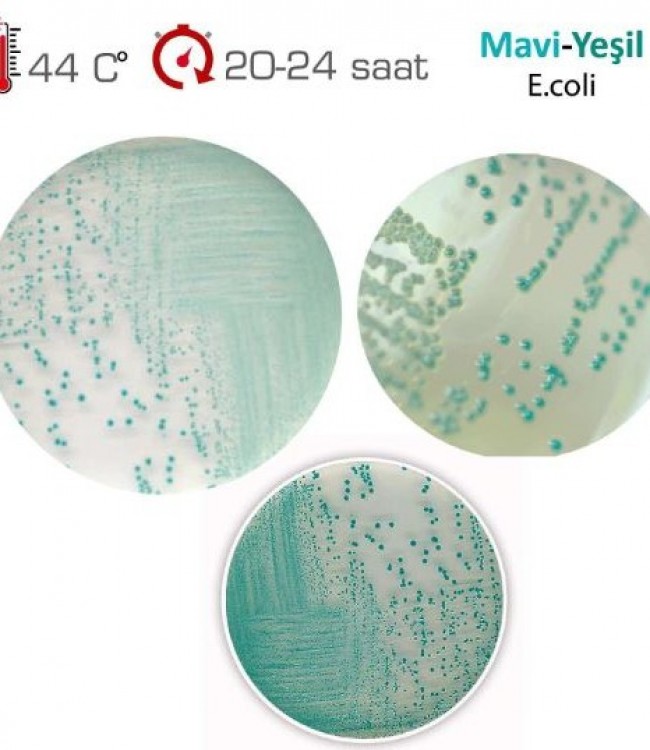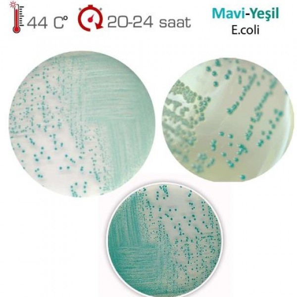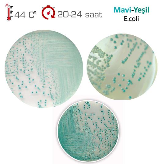 E.coli kolonileri mavi-yeşil renkte oluşmaktadır.